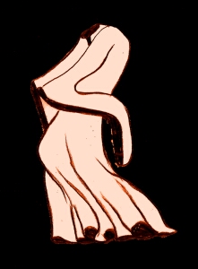 Drawing after a Spanish sculptural relief of St. Juliana and Devil, circa the late 12th century in Siones, Spain