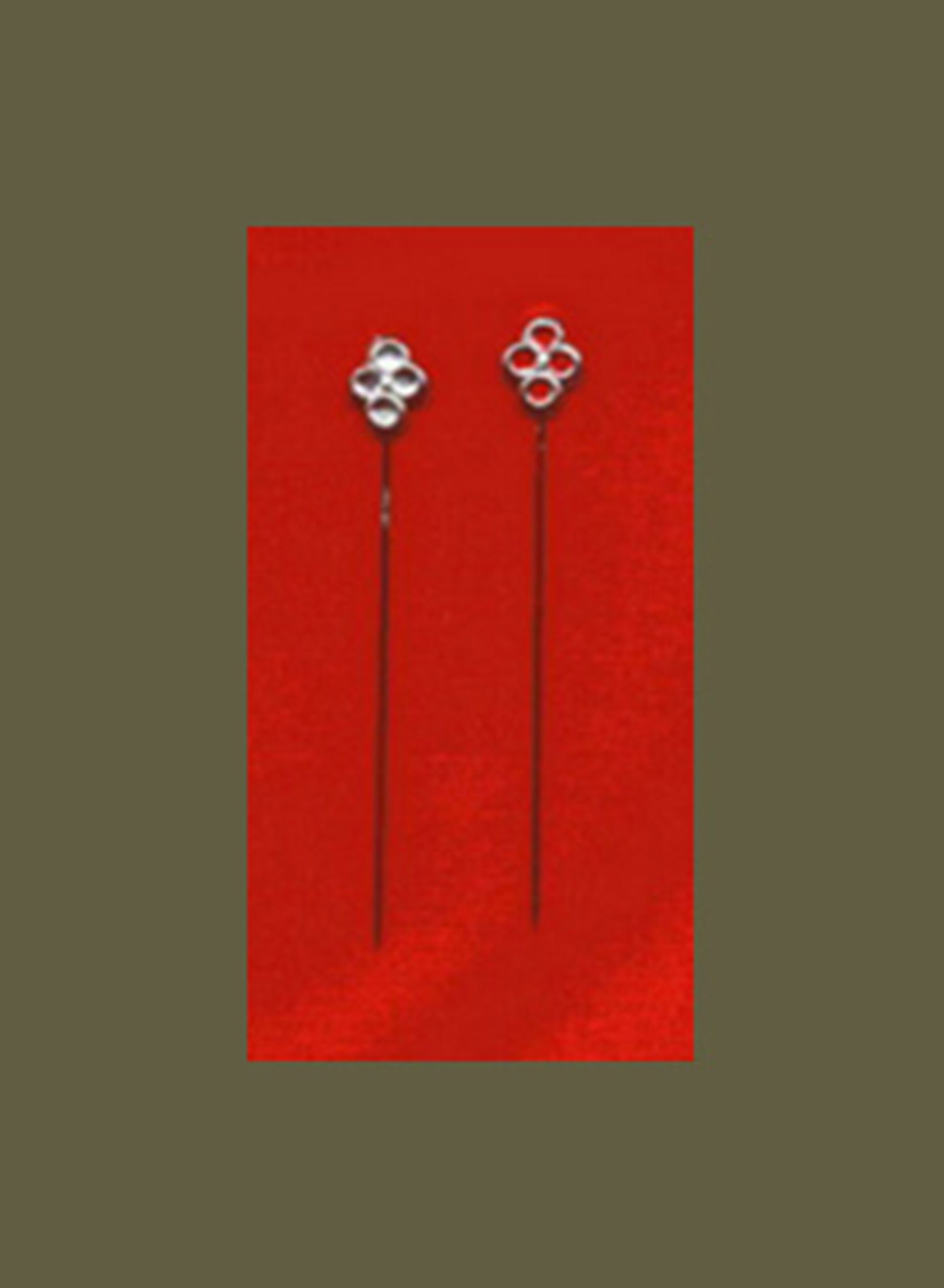 Pins to secure your veil or wimple. Come in pairs. Available in Plain Pewter, or with Black, Red, Green, or Blue enamel accents. (Plain and Red shown at left)