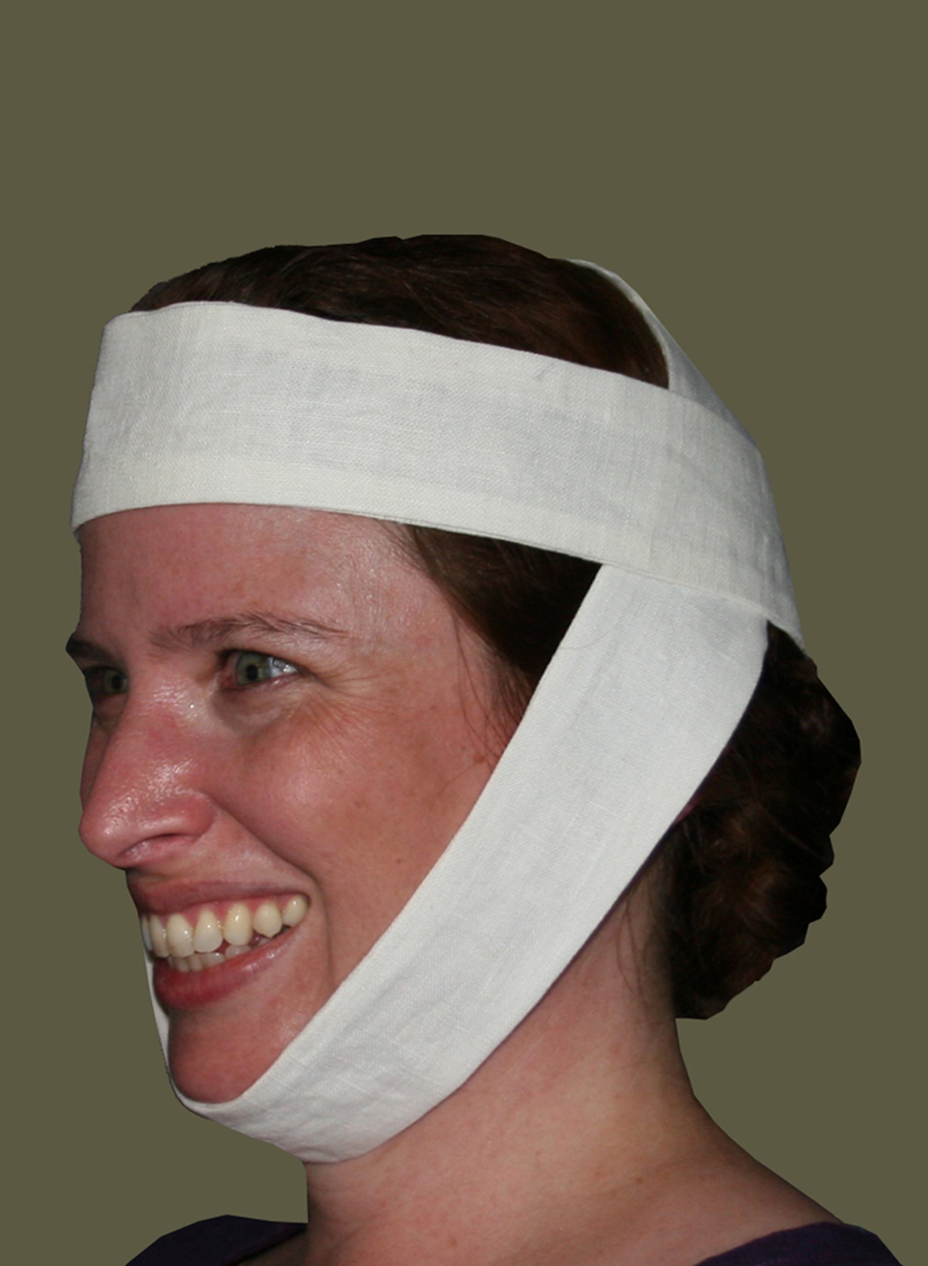 Head-coverings were a critical component of dress in the Middle Ages. Hats were common with men and women of all classes, and came in a wide variety of forms, and made of a wide variety of materials. Men wore their hats alone or over a hood or coif, while women seem to have worn theirs either alone, over a simple veil, or over a full veil and wimple. Our plain fillet is one size, meant to be closed by pinning and is best secured to head when worn horizontally with a Barbette using Veil Pins. The Plain Fillet is a great foundation for securing a variety of headwear such as Veils, Flemish Hoods, Henins and more.