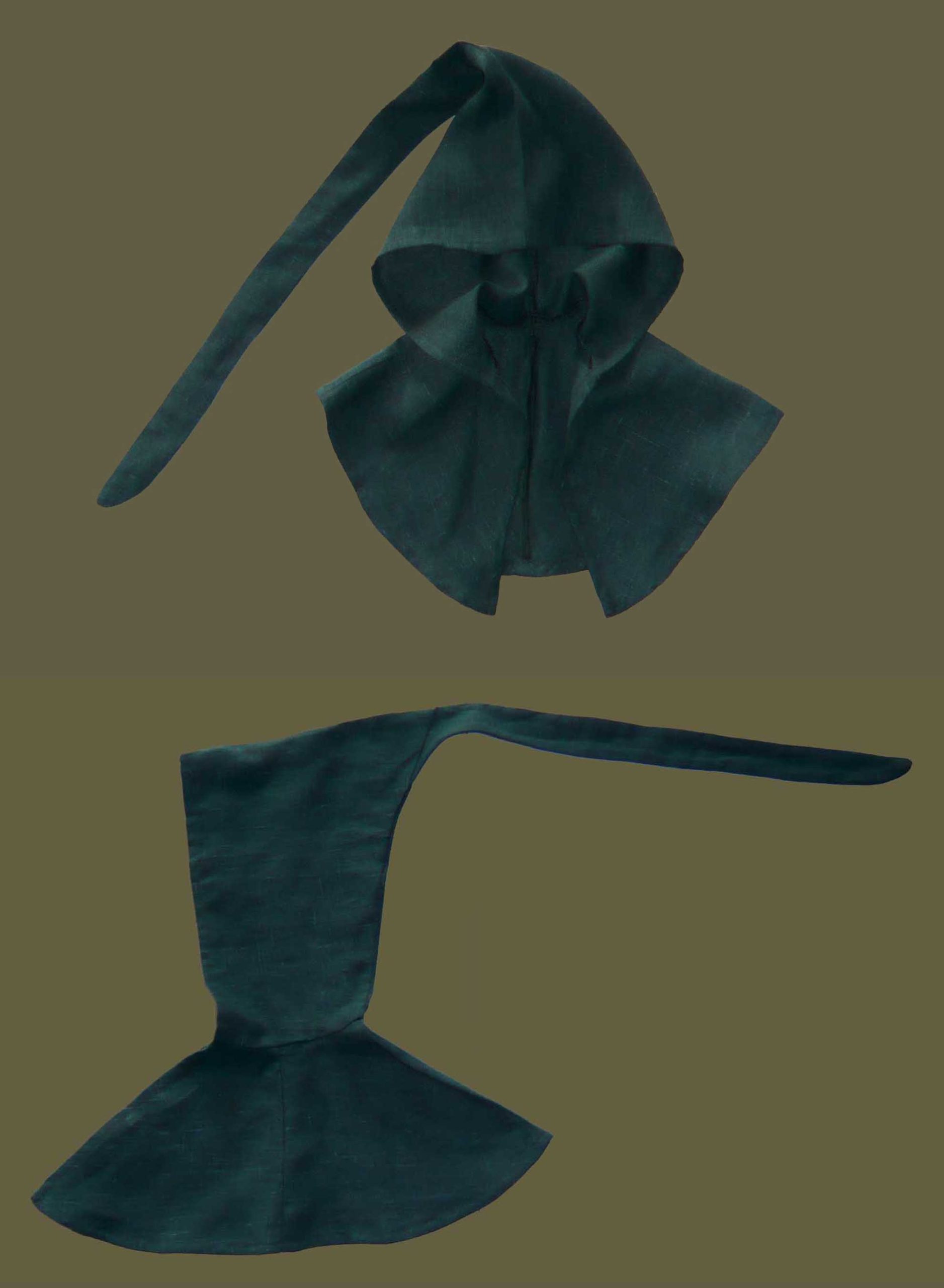 Drawing after a 14th century extant hood from a churchyard in Herjolfsnes Greenland, in the Danish National Museum, Copenhagen, Denmark