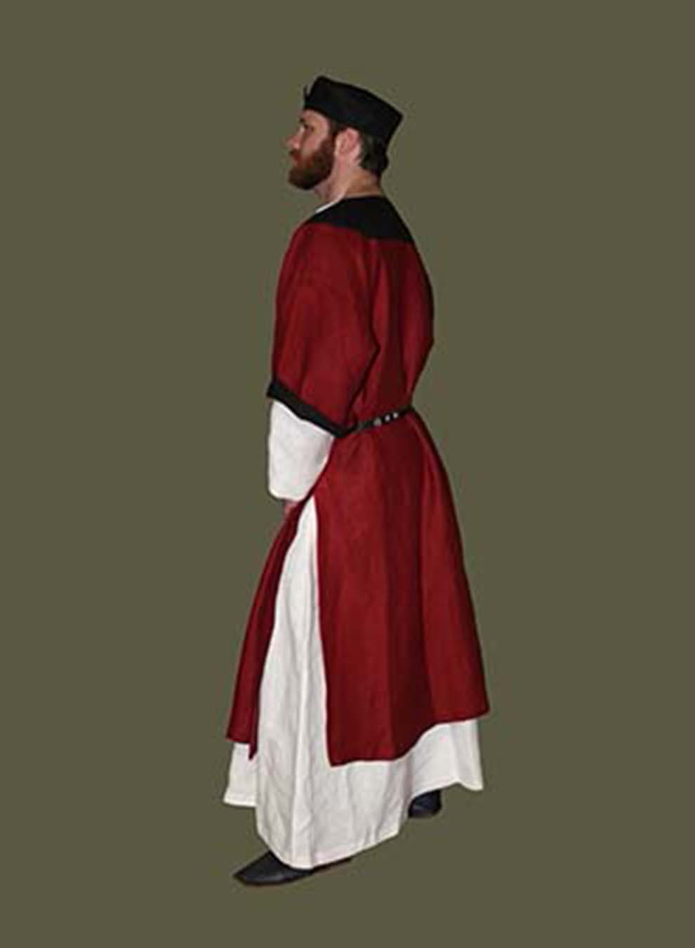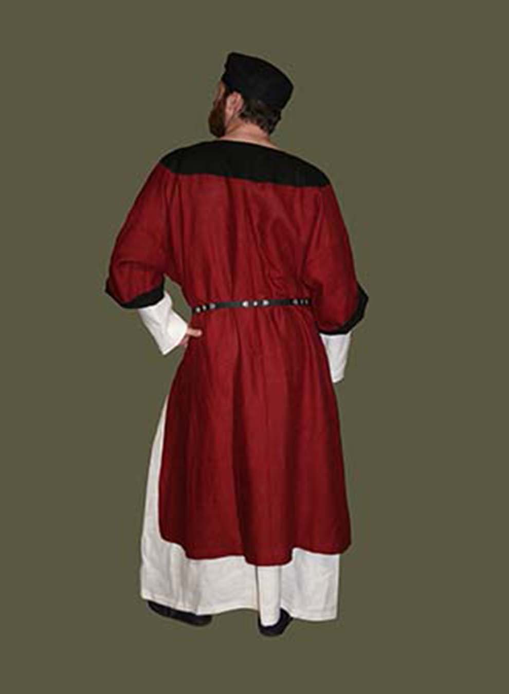 Right: A Lord stands tall in his red and black Supertunic with his contrasting Undertunic. He compliments the outfit with a black Belt and a pair of black Ankle Boots. Not shown are his silk Chauses and Braies.