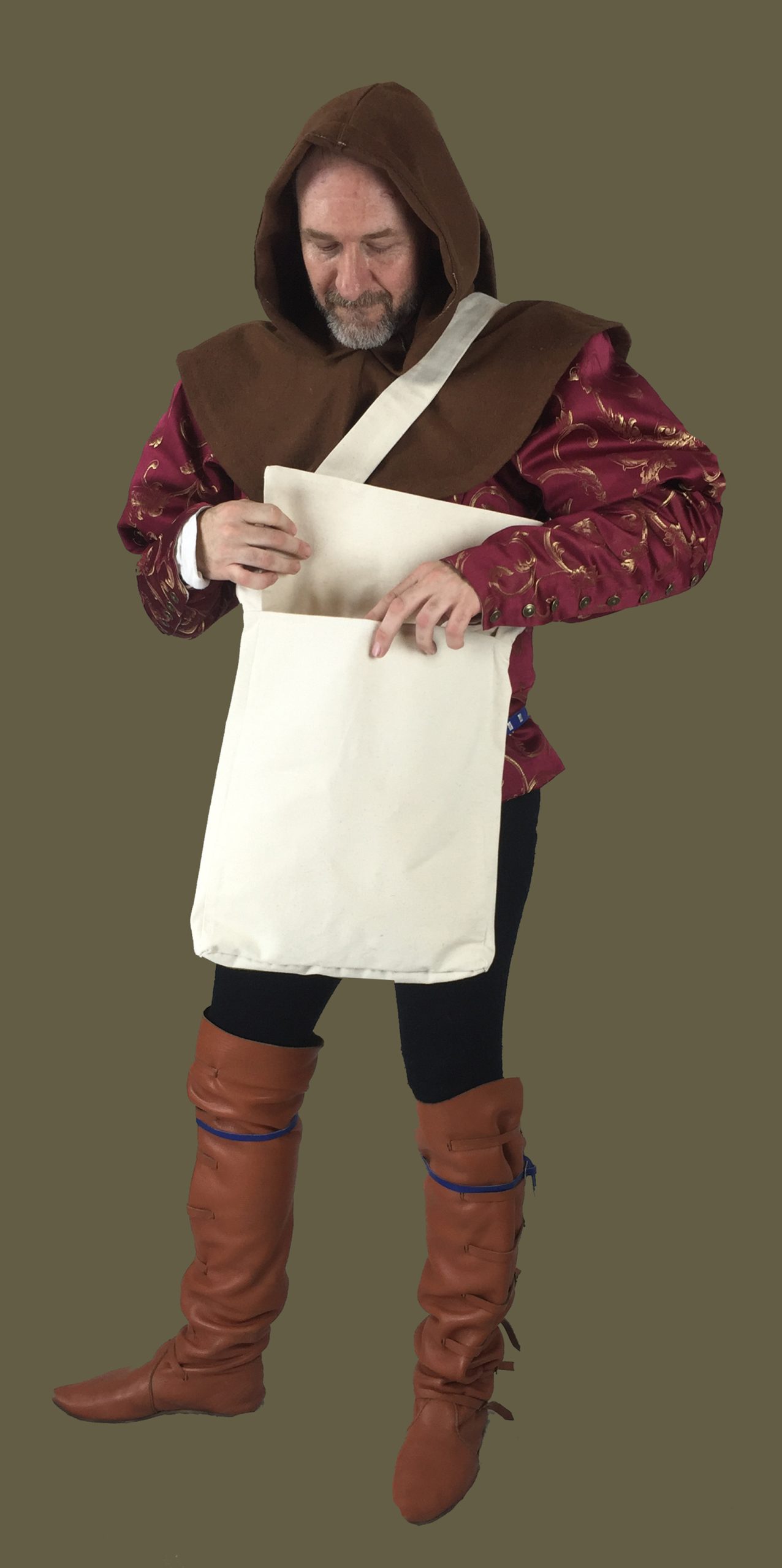 Our medieval Market Bag is the perfect way to carry your items around your event. It is similar to pilgrims bags depicted in medieval manuscripts. We have two versions to appeal to all medieval reenactors. We have a heavyweight Cotton canvas in natural or a lightweight linen version in an oatmeal color. The bag is 16″ x 14″ x 2″ which is big enough to carry all your purchases from the market. The strap is 48″.