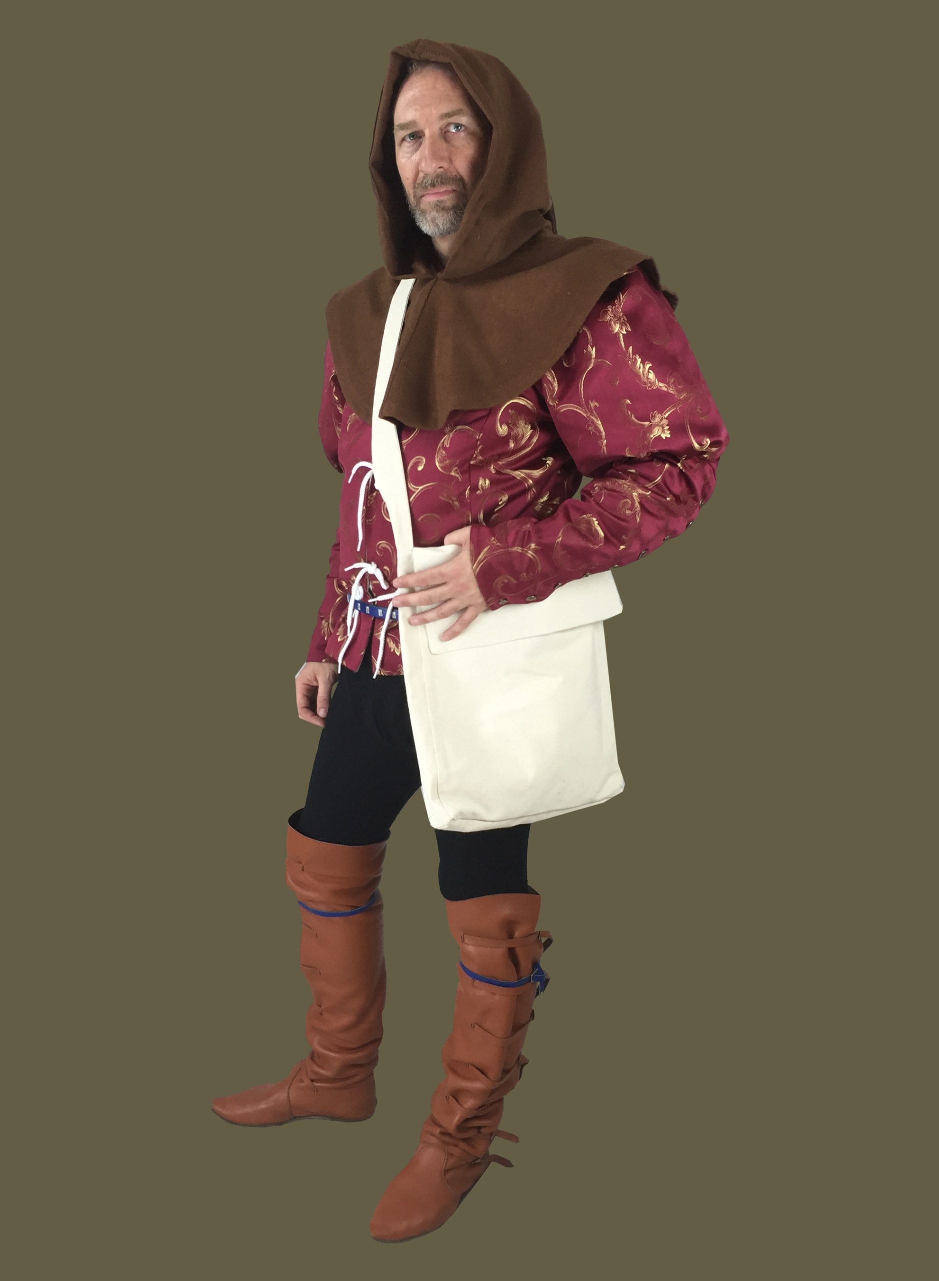 Our Market Bag with a Brocade Doublet, Wool Joined Hose, and Wool Short Tailed Hood