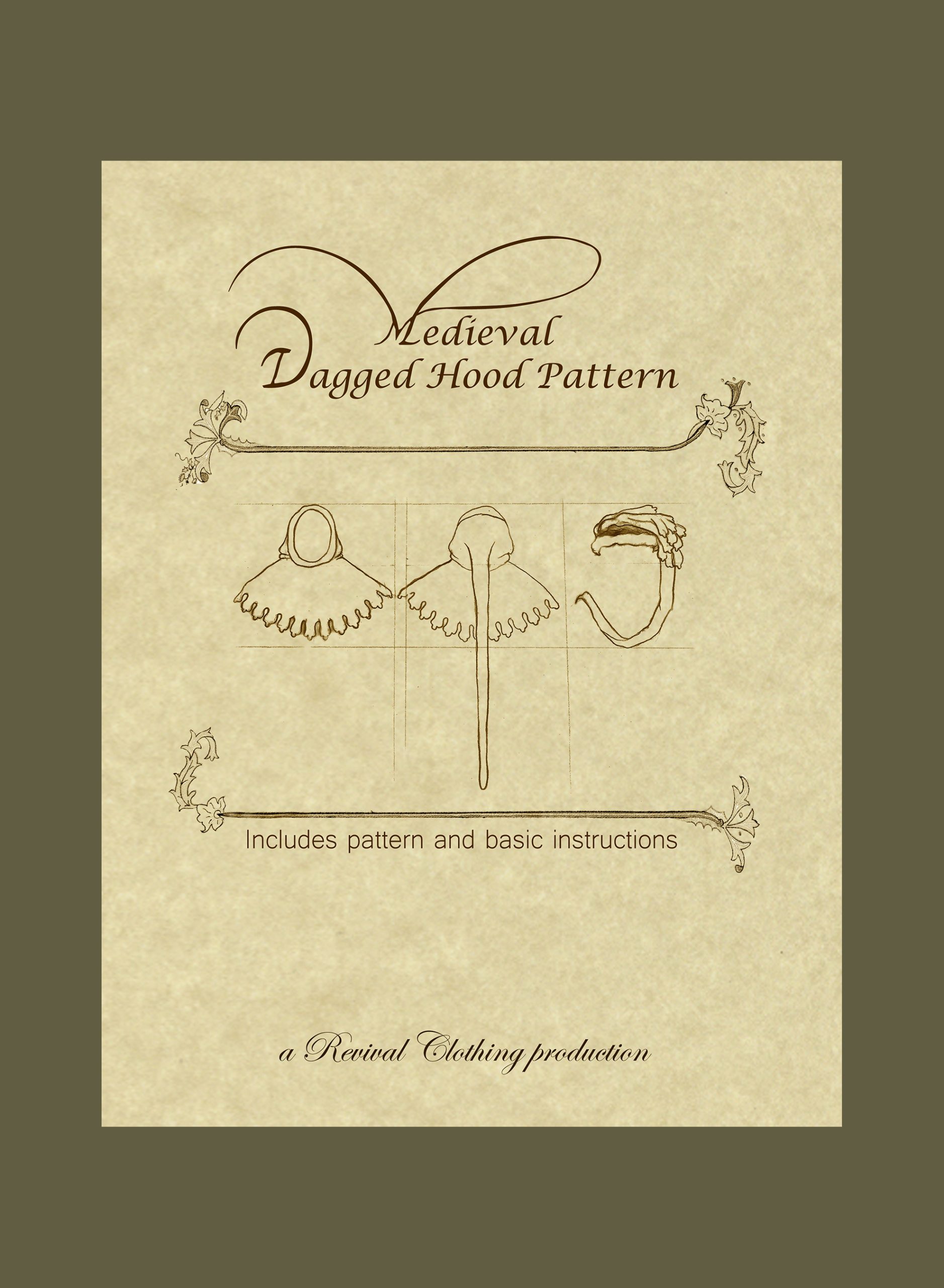 Head-coverings were a critical component of dress in the Middle Ages. Hoods were common with men and women of all classes, and came in a wide variety of forms: long tailed or liripipe, short-tailed, dagged or straight hems, either pull-over or with an open front that was buttoned or pinned closed. Only the sumptuousness of the fabric, elaborateness of the dagging, or extreme length of the tail distinguished the hood of a duke from that of a villein. Men wore their hoods alone or with a plain linen coif beneath or a hat over, while women seem to have worn the hoods alone or with a wimple. In general, the most extreme version of this style with the longest tail or, liripipe, was typical in the mid to late fourteenth century while our short-tailed version is more typical of earlier fourteenth century portrayals. Made in fulled woo, so that the dagg edges won’t fray, this hood is joined in the front for the ease of pull-over wear and is a stylish solution to keep warm while being completely authentic. It can also be rolled into chaperone hat.