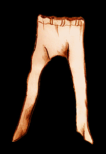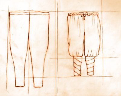 Our linen trousers are based on finds from Thorsbjerg and Damendorf in late Roman Era Germania. Fitting loose in the waist and thigh, our trousers taper to a straight lower leg, which is cut from one piece of cloth that runs straight up to meet a separate gusset set in for the seat and crotch. The trousers are secured by a drawstring waistband.