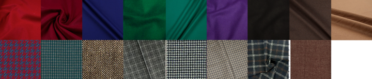 Blue/Red Houndstooth, Hunter Green Check, Brown Herringbone Tweed, Grey/Black Plaid, Black/White Houndstooth, Brown/Gold/Creme Simple Plaid, Black/Brown/White Windowpane Plaid, Maroon/Golden Brown Houndstooth