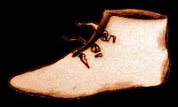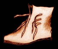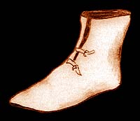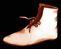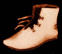 Drawing after extant pair of boots found on Haarlem circa 14-15th century in Groenveld Archaeological Museum, Holland, the Netherlands