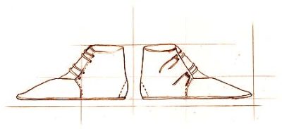 Drawing after extant child’s boot finds in Lochem Netherlands century 12th century
