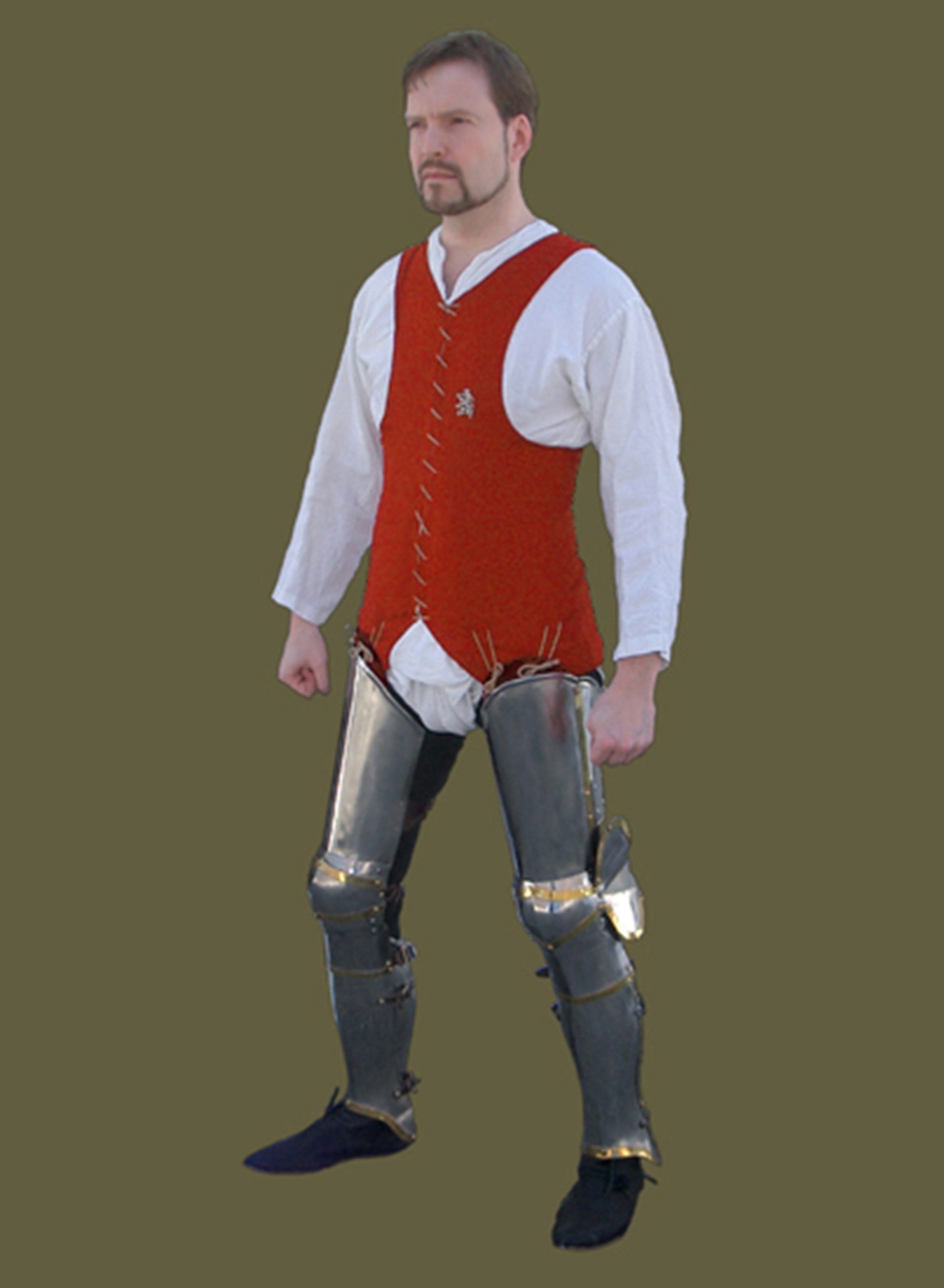 “The Pourpoint is the answer for supporting Leg Harness.I have the Revival pourpoint.. and I can say without reservation that it is the best, most comfortable,most stable arrangment for holding up leg harness I have ever used, and I have used them all. In 22 years of armoured combat I have never had a harness more comfortable and high performing than I do now.. all due to the Revival Arming Pourpoint.