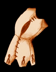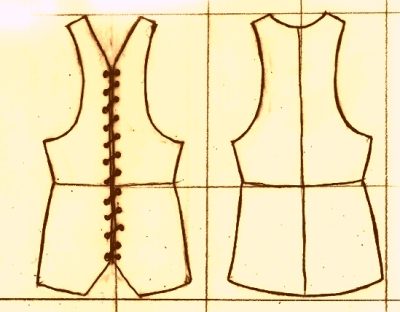 The key is to have the pourpoint.. **very** tight, the sides of the garment opening should **just** meet when snugged very tight on the hips.. and if you are conventionaly shaped this will mean that the garment *won’t* meet over the chest. This is the proper fit IMO, ( this has the added benefit of girdling in your “extra padding” and providing a more svelte profile )