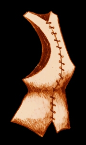 Note: This chart is meant as a general reference – and gives the measurements with the pourpoint laced to meet in the middle. Because this garment is laced up it has allot of flexibility in how it fits. It won’t precisely lace up to meet in the middle on most people (unless you happen to be that exact size) but that is not necessary in order to fit correctly or look good. Please note that if you are on the cusp between sizes that you generally want to choose a smaller size because the garment is meant to be worn laced very tightly in order to support the leg harness. In other words, it more desirable that there be a gap in front where it laces rather than have it be even a little loose. That way you can lace very tightly from your waist to your hips in order to keep the weight and pull of your leg harness exclusively on your lower body, which is how this garment is designed to be used. If your pourpoint is not laced very tightly around your waist some of the weight of your leg harness can be distributed up to the shoulders, which greatly increases fatigue. Because the armhole is large and the garment is sleeveless the chest measurement is not a factor in fit.