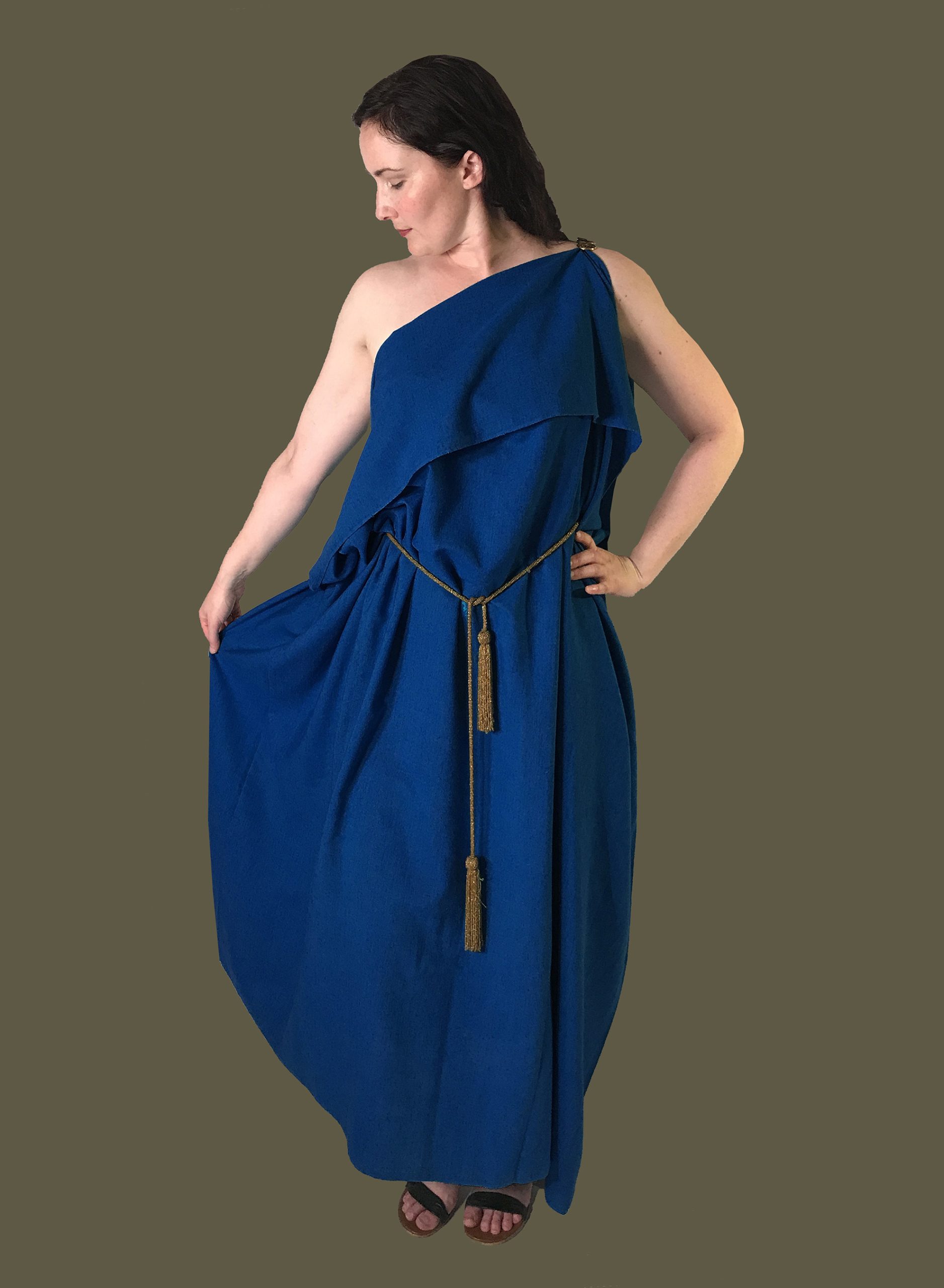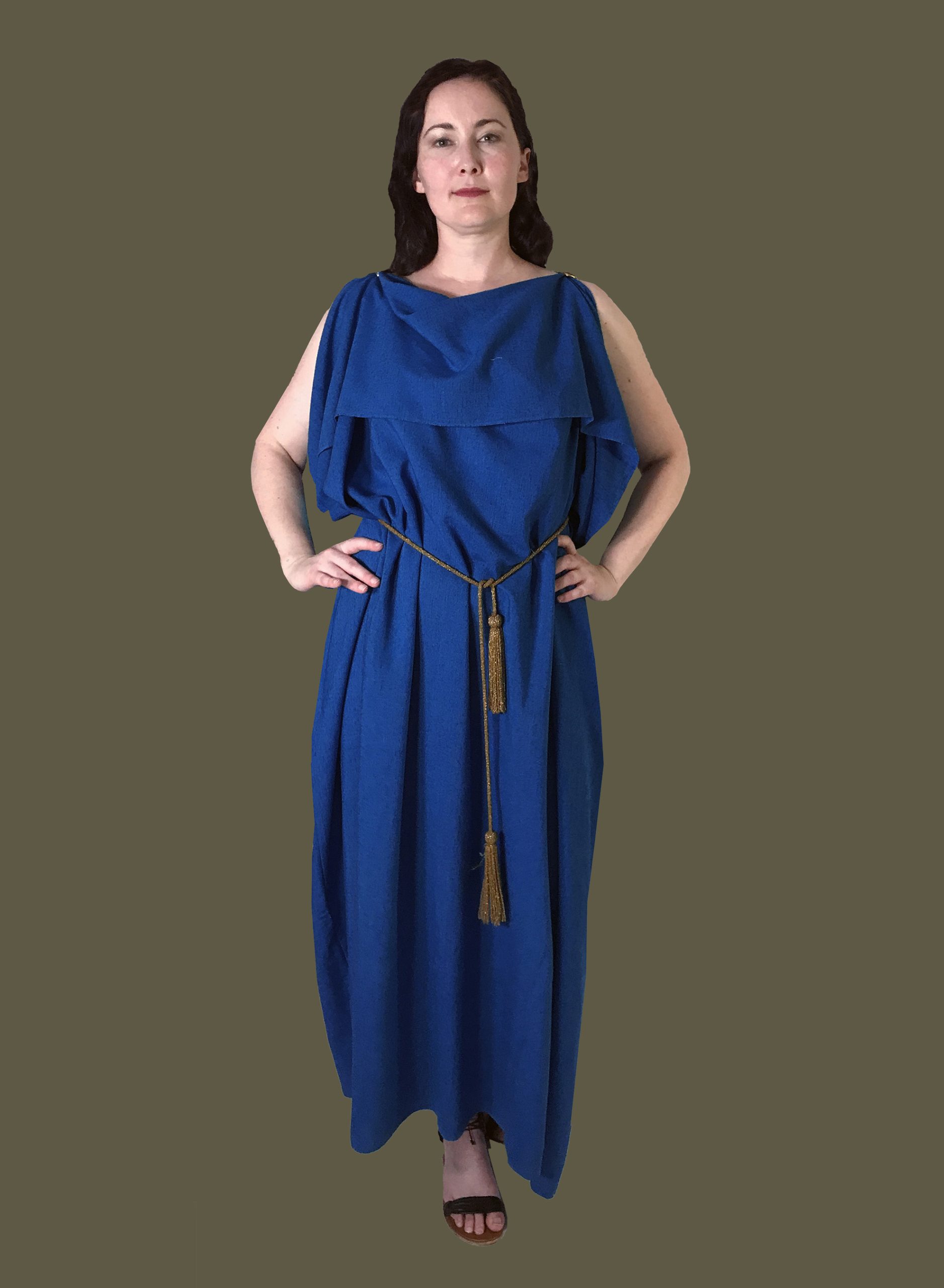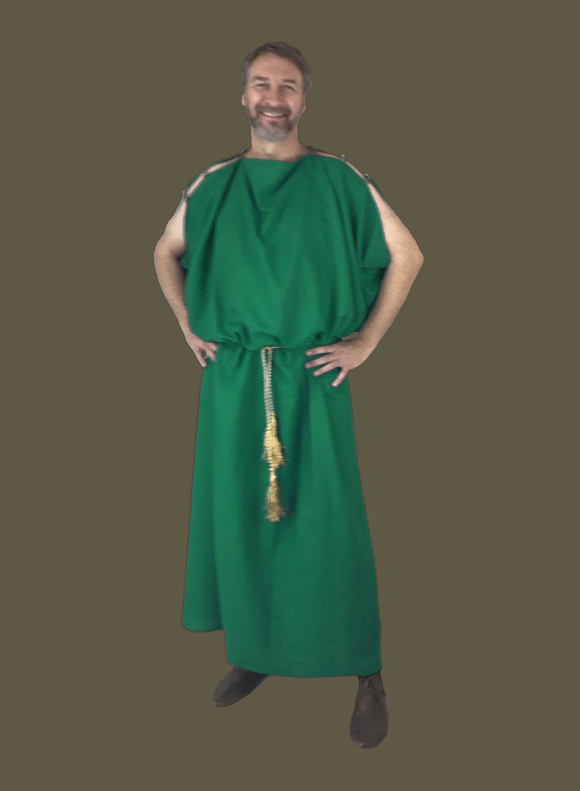 This Noble is draped in his green Chiton, and cinched at the waist in a gold Tasseled Belt. He completes his look with Ankle Boots and Brooches to secure his Chiton.
