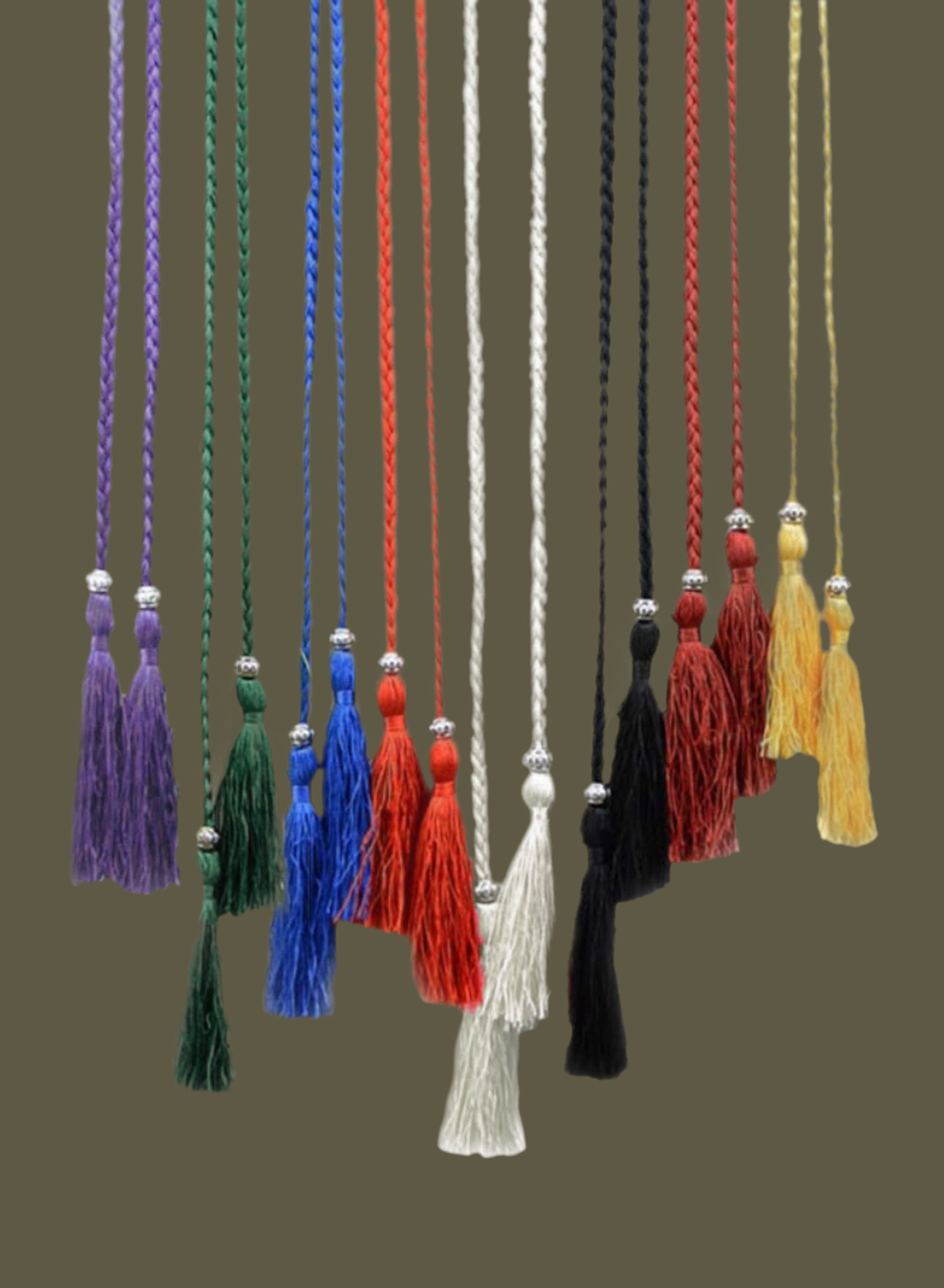 Our Tasseled Belt is a simple braided cording with a 4″ tassel at the end and decorated with a pewter colored bead. The Belt can be used for a variety of different products like our Chiton, Long Tunic/Kirtle, or Bliaut. It is 63″ in total length.