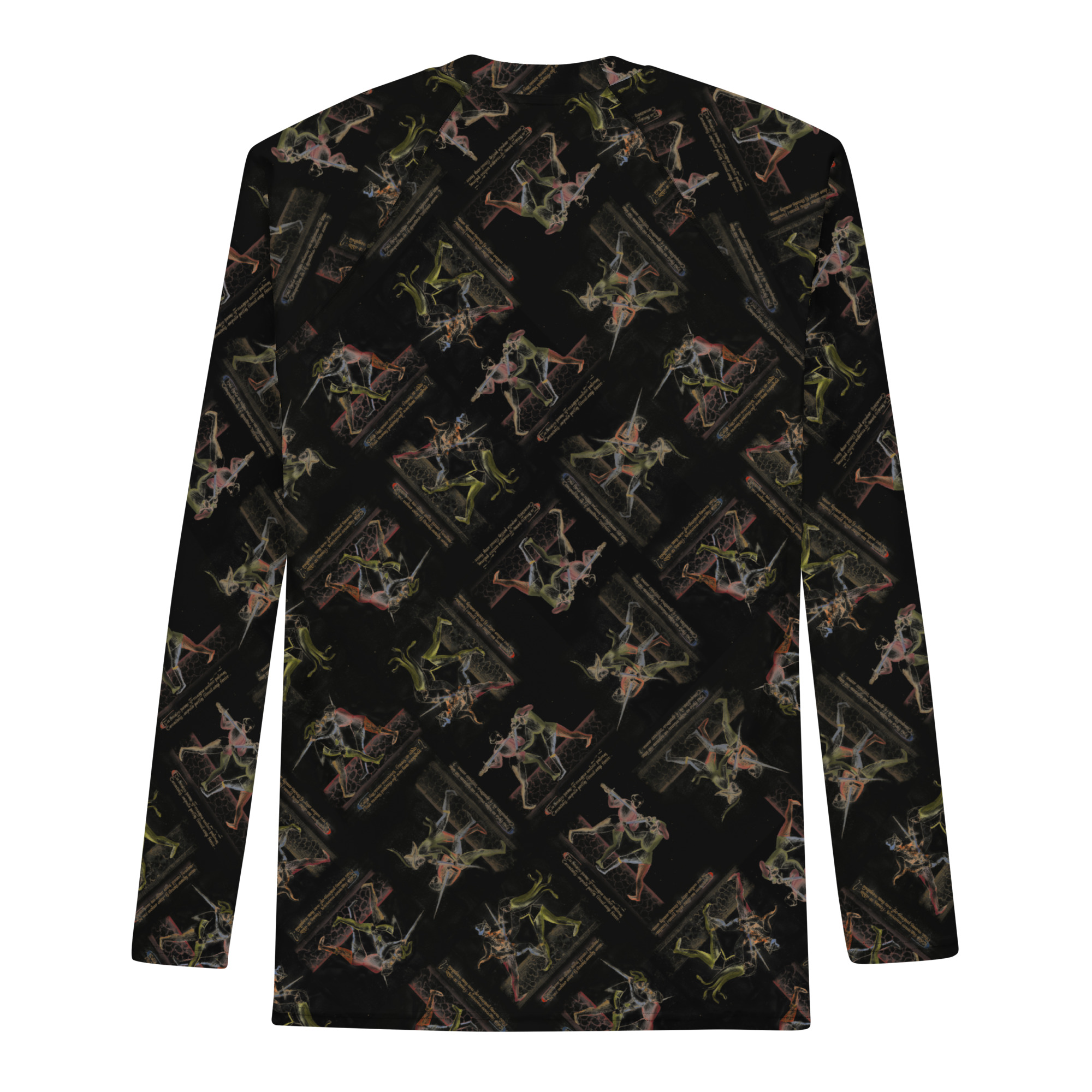 Our Fiore Floris Rashguard features an all-over print is inspired by the art from the Italian Medieval Fight Book, the Florius de Arte Luctandi, or Flower of Battle by Fiore de‘i Liberi circa 1410. Printed in high resolution, photo-realistic detail, our long sleeve shirt is 82% polyester, 18% spandex. The fitted design is made with soft four-way stretch fabric that stretches and recovers on the cross and lengthwise grains. Printed using Dye Sublimation with eco-friendly inks that are designed to last for years without fading in the wash. We are really excited about this phase of the project – translating these beautiful images into textile designs. Have a favorite image you’d like to see? Let us know!